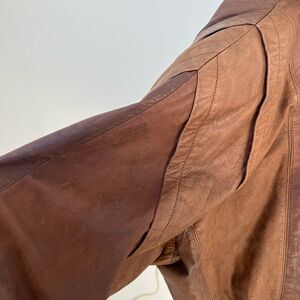 Vintage 70’s brown genuine leather shearling biker motorbike bomber jacket M