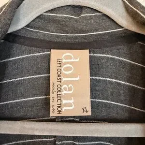 Anthropologie Dolan Left Coast Collection Cotton Stretch Knit Striped Long Blazer Dark Gray Pockets Button.