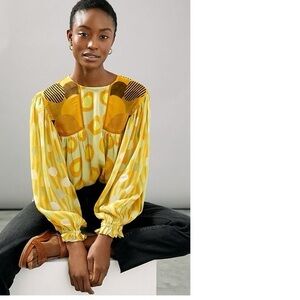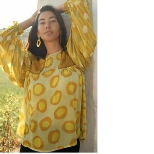 Anthropologie Yellow and Gold Patterned Blouse