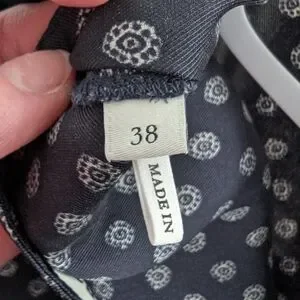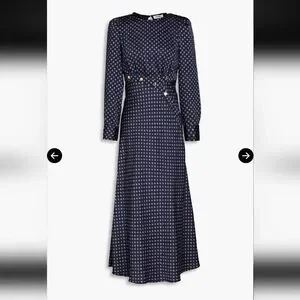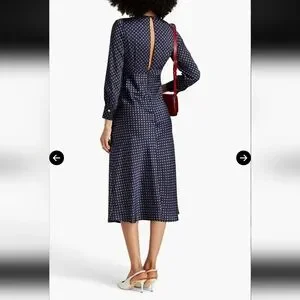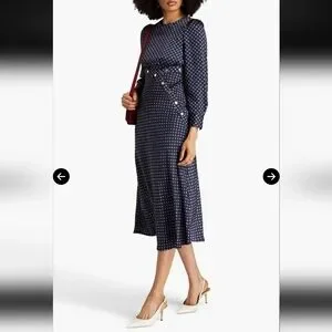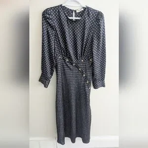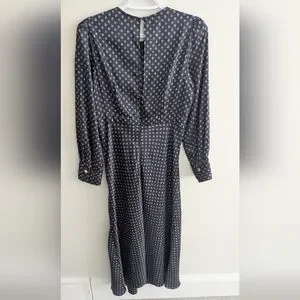 Chic navy dress with subtle pattern. Features long sleeves and button accents. Ideal for versatile styling. In good used condition. Size 38 which is a US 6 in women's.