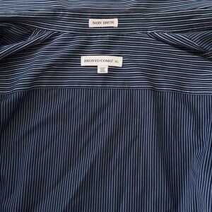 Pronto Uomo Men XL Non-Iron Button-Up Navy Pinstripe Long Sleeve Dress Shirt