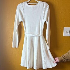 Anrabess Like NWOT. Elegant off white ribbed knit dress. Features a matching belt for a flattering fit. Perfect for any occasion. Super soft and beautiful flare at bottom. This dress is stunning!!!!