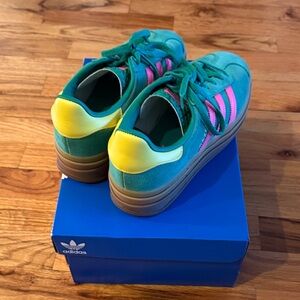 Gorgeous and bold green Adidas sneakers with pink and yellow accents. EUC. Worn only a few times! Please see photos for details.