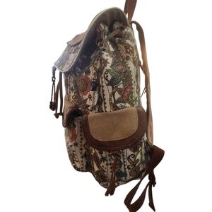 Sakroots Floral Patterned Backpack with Owls Earthy Tones And Bag Charm