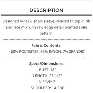 BP220-1💙POL prettyBlue Lace Detail short sleeve top w/lace accents front+ back!