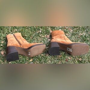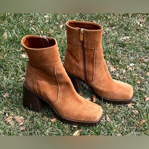 ASOS DESIGN Region Tan Suede Mid-Heel Platform Ankle Boots