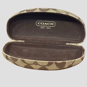 COACH Signature Tan Brown Logo Monogram Hard Clam Shell Sunglass Eyeglass Case