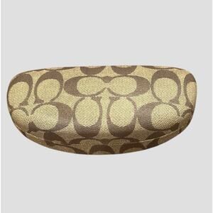 COACH Signature Tan Brown Logo Monogram Hard Clam Shell Sunglass Eyeglass Case.