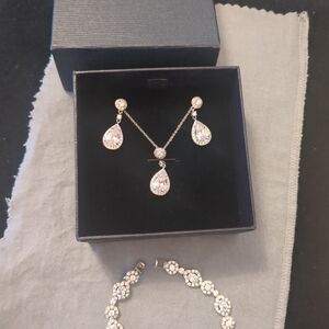 This stunning silver jewelry set features sparkling crystal accents, perfect for adding a touch of elegance to any outfit. Ideal for special occasions or as a thoughtful gift.