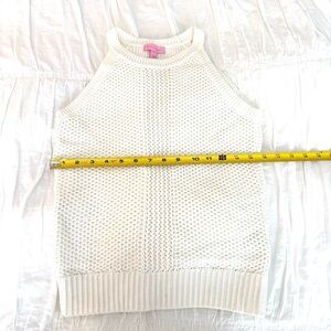 Stylish white knit sleeveless top. Perfect for layering or wearing alone.