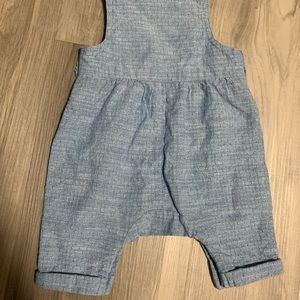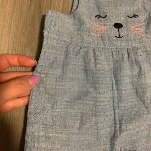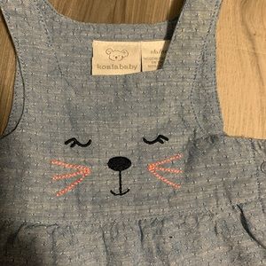 Adorable blue overalls by Koala Kids. Features a cute face design on the front. Perfect for playful days.