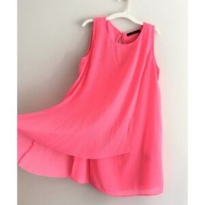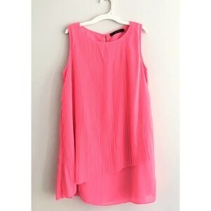 Ark & Co Mini Dress Size M Pink Pleated Crewneck Swing Sleeveless Aline