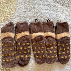 NWT 5 Snugadoo Fun Brown & Yellow Animal Polka Dot children’s Socks. Super soft.