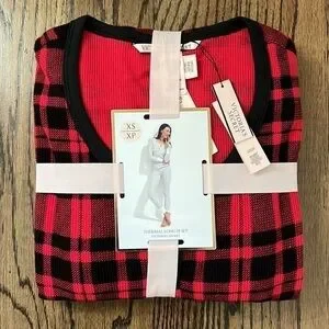 Victoria’s Secret Gingham/Plaid Long Sleeves Thermal Pajama Set Pjs XSmall