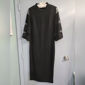This elegant black dress is perfect for any occasion. Its sleek design offers a timeless look. Worn once. I received SOOOO many compliments! Very flattering. Doesn't fit anymore ๐ช It's a Small Large or Medium in my opinion as there are no tags.