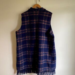 Northern Reflections | Plaid Fringe Vest Cardigan Wool Blend Plus Size