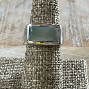 Lia Sophia Ocean Ring Silver & Aqua Mother of Pearl Chunky Costume Ring