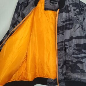 New Look Camo Bomber Jacket Orange Lined Zip Up Pocket SizeL