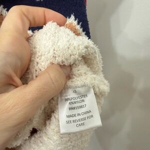 Chic chevron design with bold red and blue on a cream background. Perfect for cozy days.