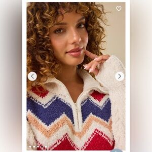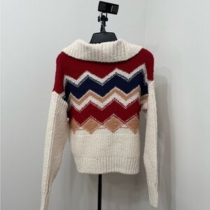 Altar'd State Chevron Cowl Sweater - Red, Blue, Cream