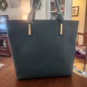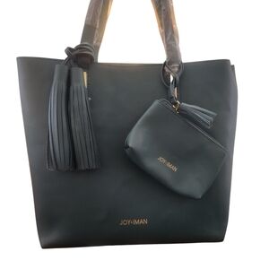Joy & Iman Deep Teal Green 2 Piece Leather Tote With 2 Large Tassels NWOT