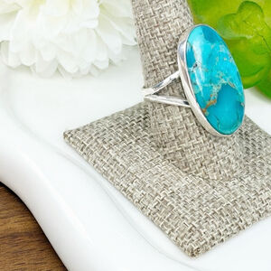 Mohave Turquoise Ring Size 8 3/4 8.75 Contemporary Boho Southwest Chunky 925 Stamped High Quality Sterling Silver 925 Filled Overlay Handmade New without tags. Includes packaging and organza bag or box. Genuine Gemstone jewelry made well to last.