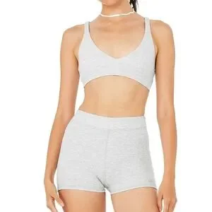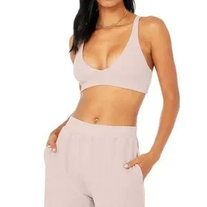 (SET) ALO Yoga Micro Waffle Pleasant Bra and Boy Shorts S Dusty Pink