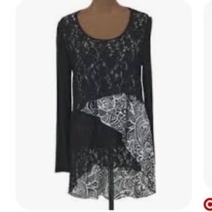 Cover Charge Vintage Black and white whimsigoth boho chic tunic top M