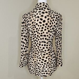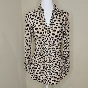 Animal Print Blouse Ruched Waist Rhinestone Buttons Sz M