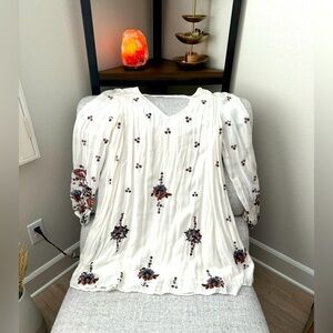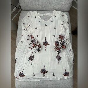 Free People XS/TP mini white dress. Gently worn. Blue, pink, lavender sewn on design.