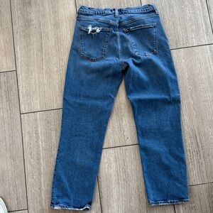 Agolde Kye jeans. Inspired by the iconic Riley silhouette, this style features a flattering mid-rise waist, a slim fit through the hips and a straight leg that ends slightly above the ankle - making for the ideal everyday jean. They’re slightly distressed as shown in the images.