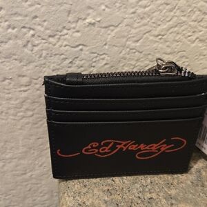 Ed Hardy Black and Pink Floral Wallet Nwt