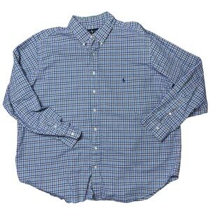 Ralph Lauren men’s long sleeve blue plaid button down shirt size 2XB cotton logo