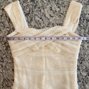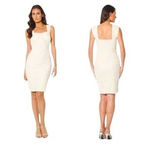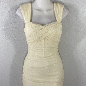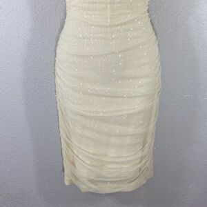 NWT Ralph Lauren ivory ruching mesh overlay sequin bodycon dress. Ruching mesh overlay with sequin under. Absolutely beautiful cocktail party dress! Zipper back. Sleeveless. New with tags, MSRP $210. Lined. Nylon shell, has stretch. Approx 39.5 inches long from shoulder. Size 6