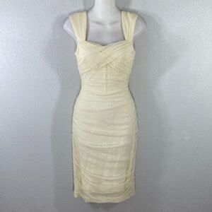 NWT Ralph Lauren ivory ruching mesh overlay sequin bodycon dress 6 NN17