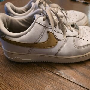 Nike Air Force 1. 2007. Size 7.5 Mens. Gold/ White. See All Pictures.