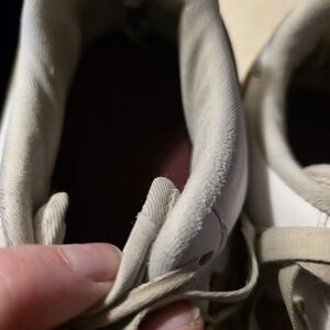 These have been well used. They have been washed and could use new insoles.. Inside heels have major wear. But when they are on your feet people cant see that. you could probably get these alot brighter white than I did with some bleach.