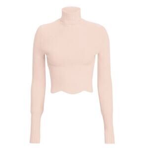 Ronny Kobo Baby Pink Cropped Scallop Hem Chenille Turtleneck Sweater M