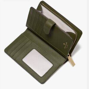 NWOT Gorgeous Kate Spade New York Madison Floral Medium Bifold Wallet. The wallet has a beautiful floral design in white, green, and pink.