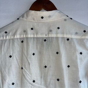 Women's Loft Cream & Black Embroidered Button Down Shirt