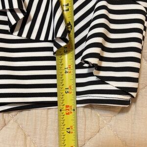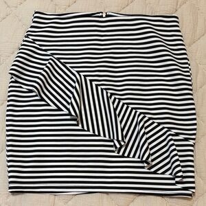 Chic Aqua skirt in size Small featuring black and white stripes with playful ruffle detailing.