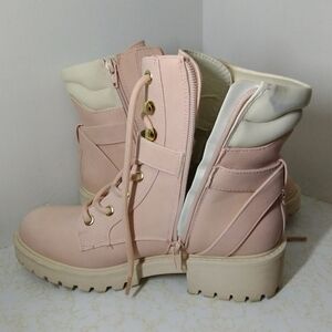 GBG Los Angeles Women's Salma Pink Combat Lace Up/Zip Size 6.5