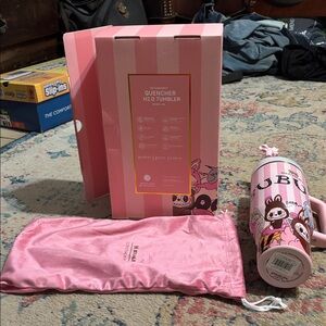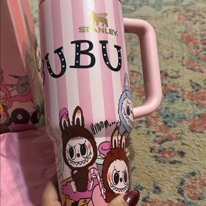 Stanley Pink NEW IN BOX labubu 40oz tumbler, straw topper box and bag