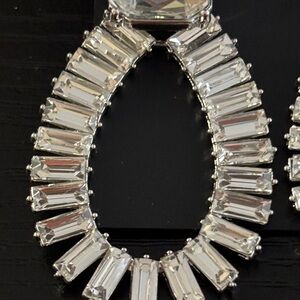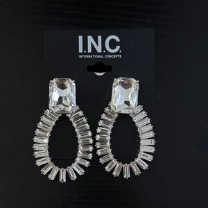INC International Concepts Silver Tone and Crystal Teardrop Earrings NWT