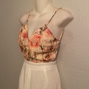 NWT Rehab floral open back white wide leg jumpsuit Medium M. Approx 31 inch inseam. Zipper side pants. Open back. Lined top. New with tags. Size medium