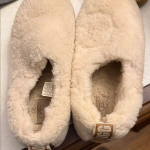 Soft cream fleece slippers by UGG. No outward signs of wear. Only inside slipper