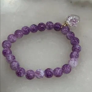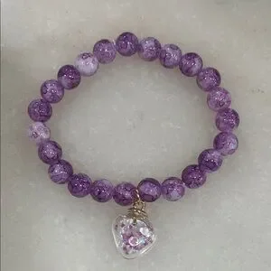 Elegant purple beaded bracelet featuring a charming heart pendant. Perfect for adding a touch of color to any outfit.
