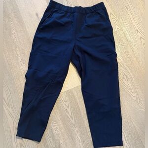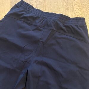 These are high-waisted pants with a classic fit, slash hand pockets and an elastic waistband. They're cut from sweat-wicking fabric with a slick, cool touch and sculpting feel.
