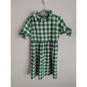 Elizabeth Wilson Judy Lainen green gingham mini dress size S cottagecore summer