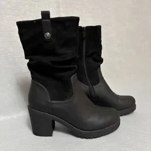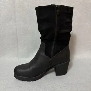 Dream Pairs Women's Black Chunky Heal Mid calf Boot US8.5
